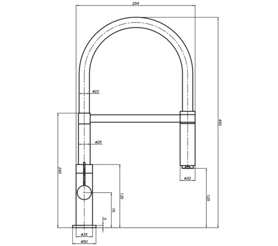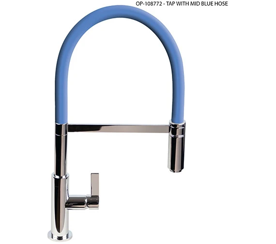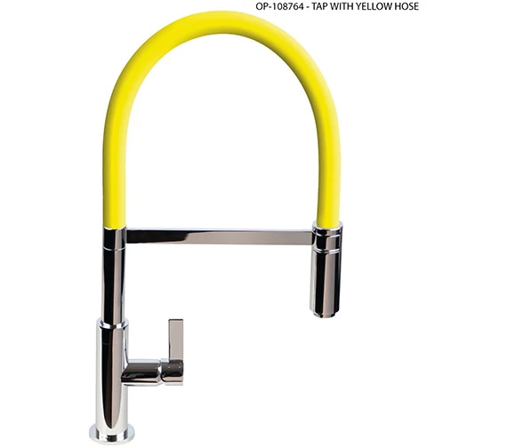 The 1810 Company Spirale Flexible Spout Sink Mixer Tap with Hose is a modern kitchen tap that can add contemporary charm to your space. This tap features a U-shaped design that extends upward from its single-level control valve. Deck mounted, it features a chrome finish that offers it a clean and modern look. A hose in variable colours makes it flexible and easy to use. It comes with a neoperl aerator as well as .5-inch flexible tails. This unit measures 450 millimetres in height, and the minimum pressure that it needs to run is .5 bars.