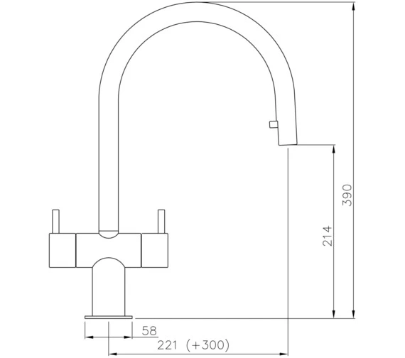 - Spout exit reach: 221mm.