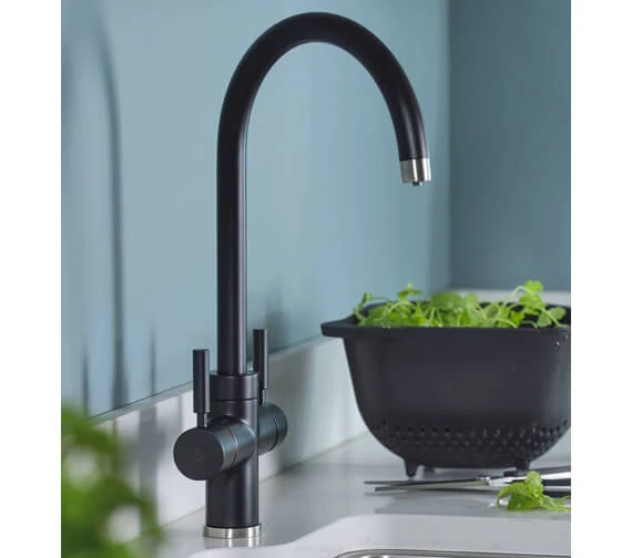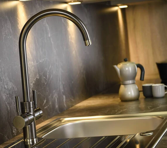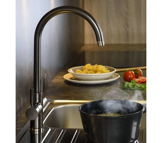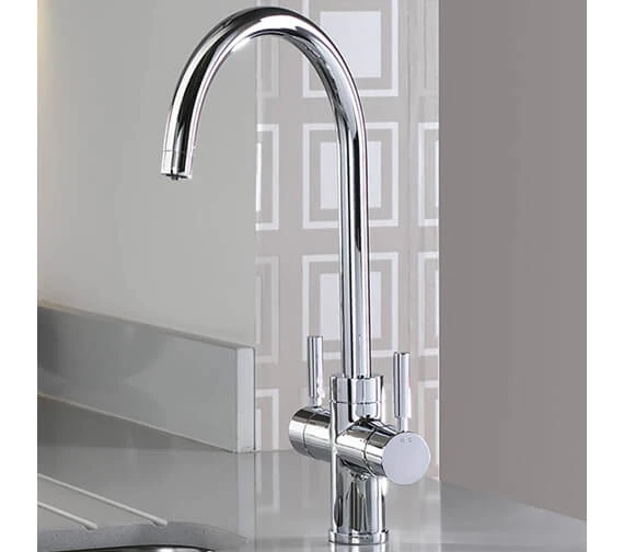 Abode Prostream 3 In 1 Swan Spout Monobloc Kitchen Sink Mixer Tap is constructed using remarkably strong brass material in a sleek minimal design. It has everything from a two-stage hot handle mechanism for safety, an energy-saving cold start and a 360-degree swivel spout for convenience in the kitchen. It allows for accurate flow control in three ways, delivering domestic hot, cold and heated up to 98° filtered water.