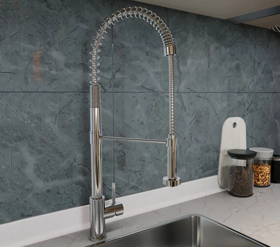 Enjoy your kitchen chores by adopting the use of the Abode Stalto Professional Kitchen Mixer Tap. This kitchen splendour is made from top-class stainless steel material to give you unimpeded long term usage. This marvellous creation, available with single lever control, is made from solid steel, providing it with enhanced durability. Having an exquisite stainless steel finish, it lends an aura of grandeur and majestic elegance to the kitchen. It features a multi-spray showerhead to ease the cleaning process. The kitchen mixer tap is supplied with flexible tail pipes for simpler installation. Abode provides a 5-year warranty on all the working parts of this kitchen mixer tap.