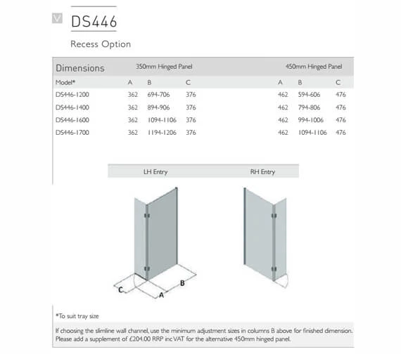 - Adjustable wall profiles – 12mm of adjustment (+/- 6mm on each side); this Option is fitter-friendly and can compensate for out-of-true walls.