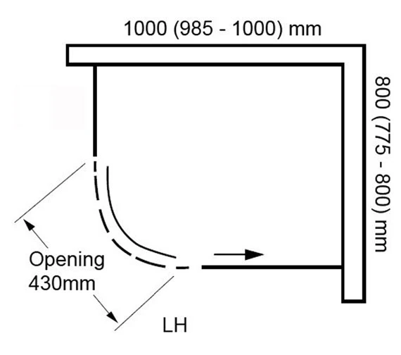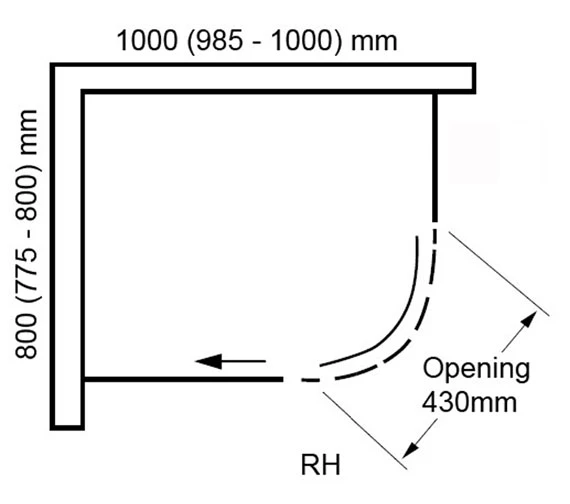 - Specification of 1000 x 800mm Shower enclosure.