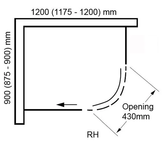 - Specification of 1200 x 900mm Shower enclosure.
