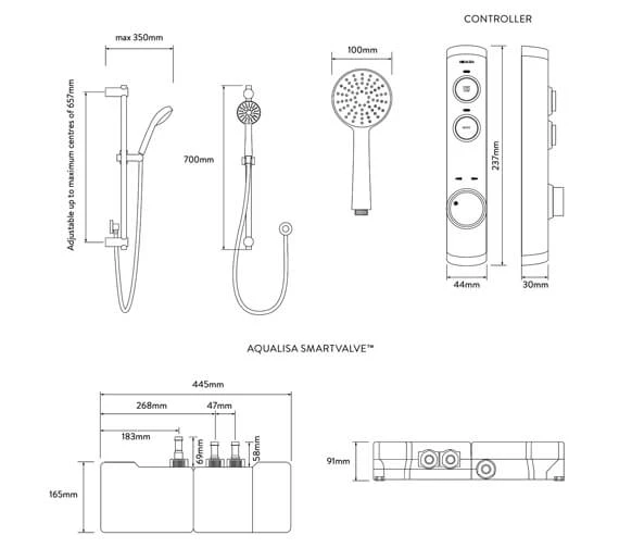 - Controller/valve unit size: 44 x 30 x 237mm [Width x Depth x Height].