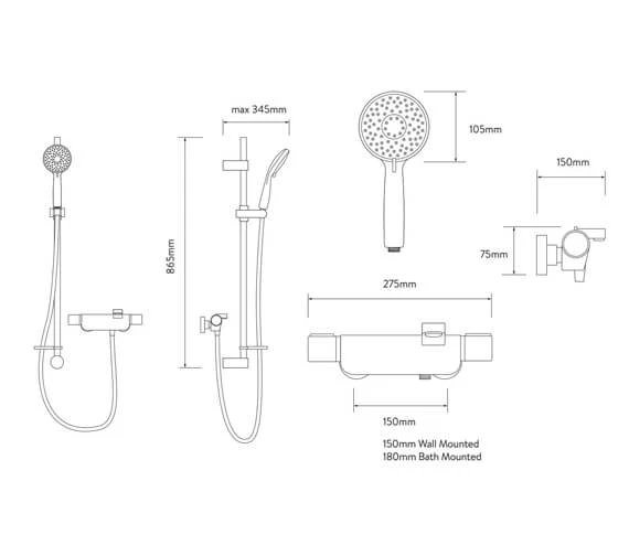 Aqualisa Midas Thermostatic Bath Shower Mixer with is a modern, designer fixture that delivers comfort, technology and durability. Featuring brass fabrication in the chrome-plated finish, a multi-function shower head with three spray patterns, it is a bathroom essential.