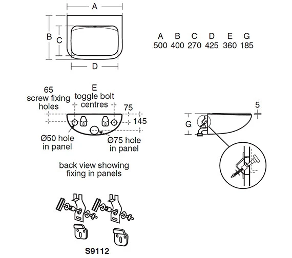 - Specification of 500mm basin.