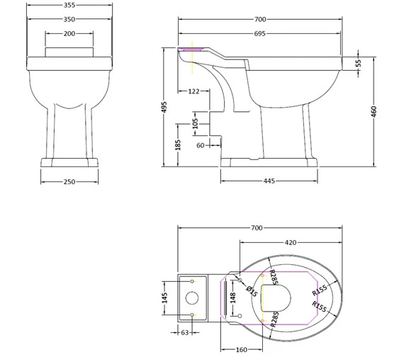 Bayswater Fitzroy 700mm White Comfort Height Closed Coupled WC Pan