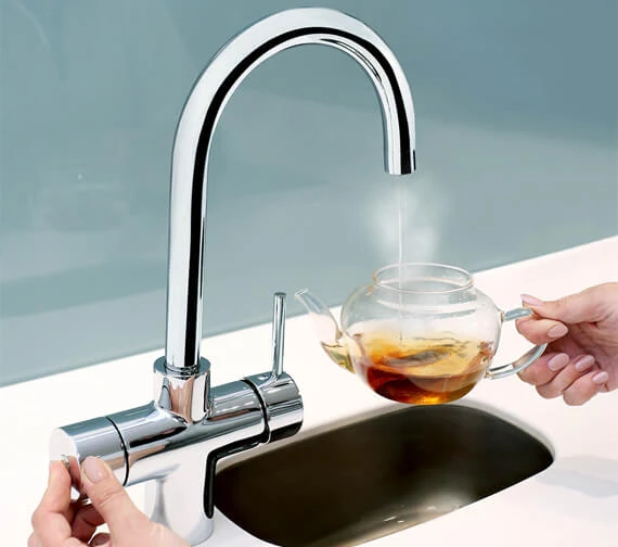 The Bristan Gallery Rapid Boiling 3-In-1 Kitchen Sink Mixer Tap is offered in a stylish, innovative design that features 7 temperature settings for use, with a range of temperatures possible from a 75-degree Celsius minimum to 98-degree Celsius maximum.
