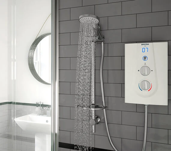 - Instantaneous electric shower drawing water direct from the mains supply is ideal for installations without stored hot water and second bathrooms.