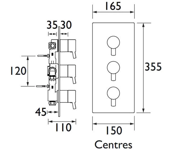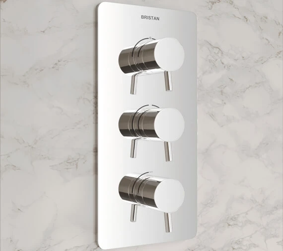 Bristan Prism Thermostatic Recessed 3-Handle Shower Valve With 2-Outlet Diverter And Stop Valve