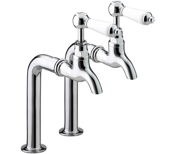 Bristan Renaissance Chrome Bib Taps highlights the high-quality construction and stunning design. The tap heads are expertly arranged on tubular stands with a clever chrome finish. They are brought to you by Bristan, UK’s market leader in producing exceptional quality taps and bathroom products and accessories. These taps come to you with metal handles for long-lasting use. This chrome finish pair of bib taps looks unique and classic, adding a traditional touch to your garden or . The deck-mounted installation is suitable for all plumbing systems and can be purchased at an affordable price from our online store.