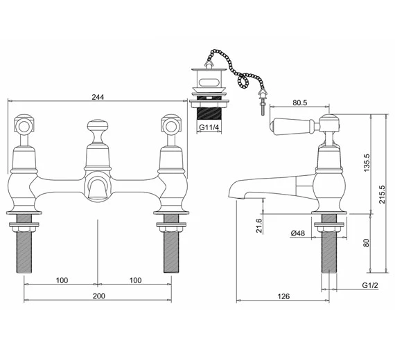 Burlington 2 Hole Bridge Basin Mixer Tap With Waste And Kensington Handle