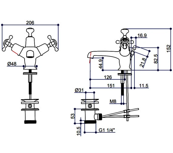 This model is constructed from brass to ensure durability and dependability. The tap features a traditional style and will look excellent with a classic-style bathroom sink. Backed by the manufacturers 15 years of guarantee and now offered here for a fantastic price, this is one mixer tap that is hard to pass by.