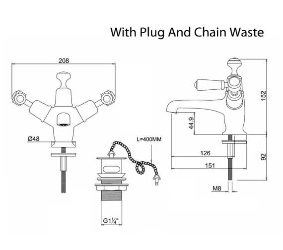 - Includes:- Quarter-turn basin mixer with waste, 2 x Kensington tap handles.