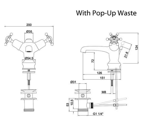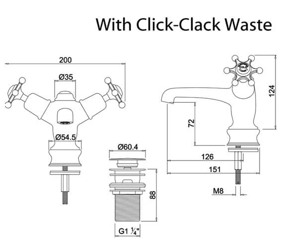 - Includes:- basin mixer with waste, 2 x Birkenhead tap handle, Regent small single tap base.