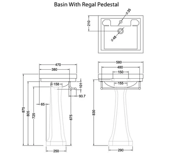 This quintessentially ornate and perfectly defined Contemporary 580mm Medium Basin from Burlington will add a touch of refined elegance to your bathroom, and the imposing optional pedestal will give you a regal feeling. Made from high-quality vitreous china and finished in pure white, this traditional design basin comes with optional tap hole and a Lifetime manufacturer guarantee. Suitable to use with .