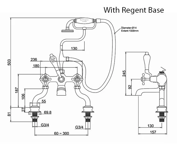 Burlington Deck Mounted Traditional Bath Shower Mixer Tap With Claremont Handles is full of pleasant surprises. Made of brass ingots and chrome-plated to perfection, it will put a sparkle into your bathroom. Deck-mounted for convenience, this tap comes with a standard cradle, S adjuster, ceramic diverter, hose, and telephone handset.