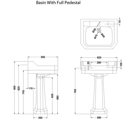 This unassumingly ostentatious and aesthetically charming Edwardian 620mm Rectangular Basin from Burlington is a fantastically brilliant bathroom adornment. Made from the high-quality vitreous and finished in sublime white, this 620 mm wide and 505mm deep traditional style basin comes with an option of 1, 2, or 3 tap holes. Burlington provides a lifetime guarantee on this product.