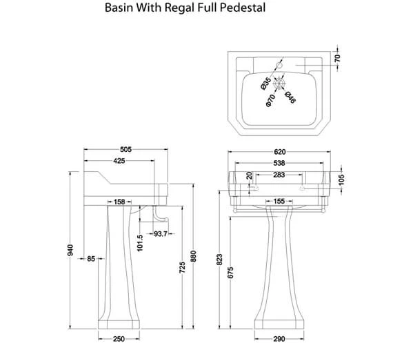 - Height with Regal pedestal: 940mm.