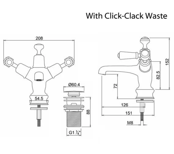 - Includes:- Quarter turn basin mixer with waste, 2 x Kensington tap handles and Regent small single tap base.