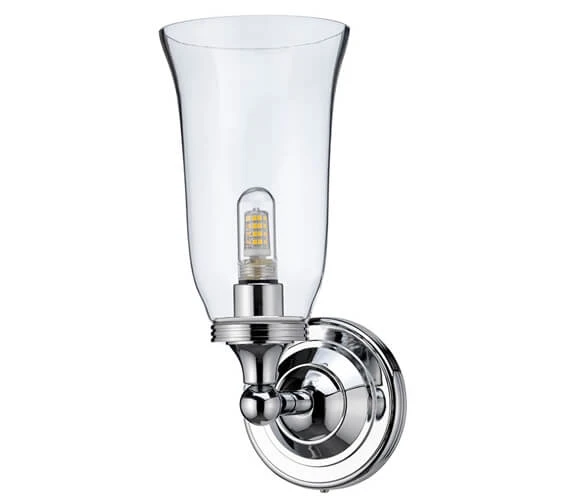 Light up your bathroom elegantly with the LED Bathroom Light With Chrome Base And Clear Glass Vase Shade. This bathroom light features a charming look and offers plenty of functionality. The shade is clear glass made using mouth-blown technology.