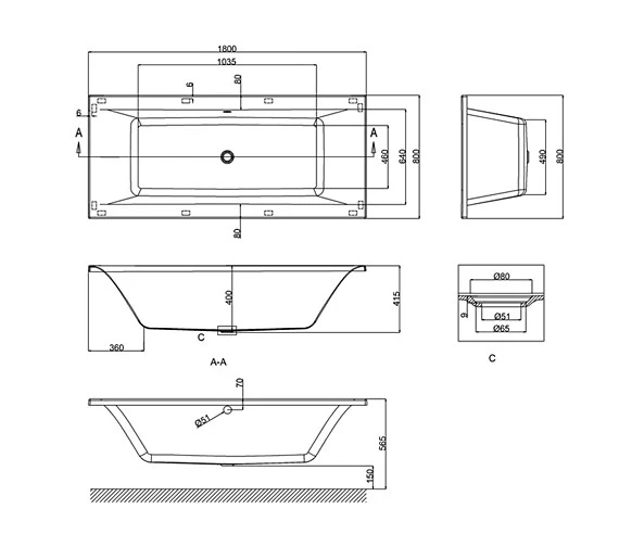 Cleargreen Enviro Rectangular Double Ended White Bath 1800 X 800mm Square