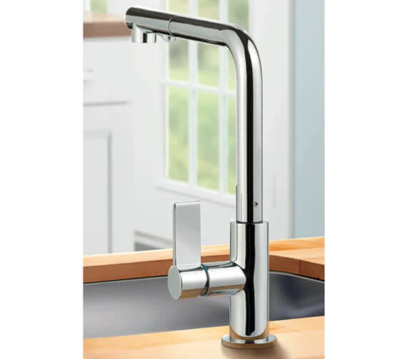 The Clearwater Auriga Monobloc L Kitchen Sink Mixer Tap with Dual Flow Pull-Out Spray is a modern, offset-style tap with a tall and towering L-shaped body with rounded corners that give it a sleek appearance. A handset rests at the end of the tap that can be removed to direct the water in a more precise manner with two flow settings, including cascade and jet dual flows. The spout itself can swivel up to 360 degrees to give you more control over where the water flows. Overall, the tap measures 295 millimetres in height. Suitable to use with all types of .