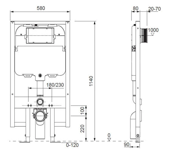 Crosswater 1140mm Height Ultra Slim Wall Hung Toilet Support Frame