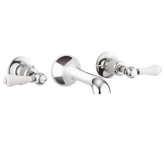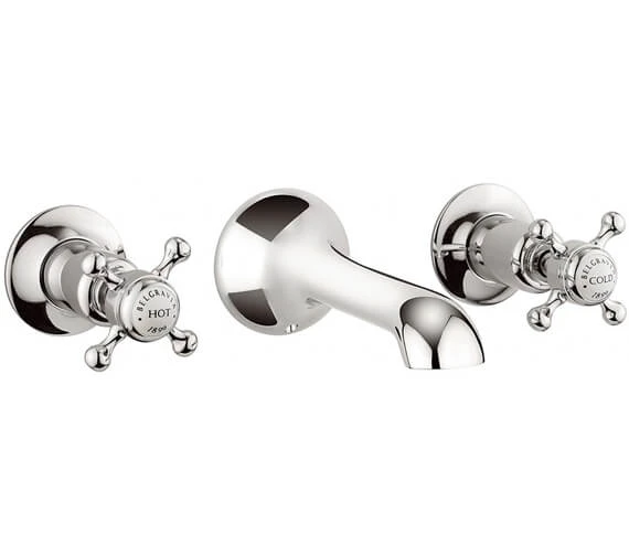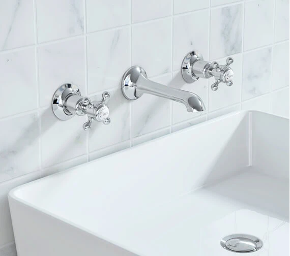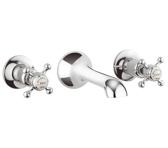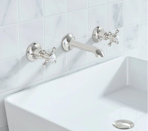 Robust and reliable Crosswater Belgravia Crosshead 3 Hole Wall Mounted Basin Mixer Tap has a nostalgic design and old-world charm and is suitable for traditional bathrooms. The well-constructed crosshead handles offer a good grip and come with white glazed ceramic temperature indices. A fine nickel or chrome finish adds to its appeal. A perfect spout projection facilitates usage. Made from the finest brass, its quality is peerless. Designed for use in low water pressure systems requires a minimum of 0.2 bar water pressure for effective functioning. It is supported by a 15-year guarantee against any material or manufacturing flaws.
