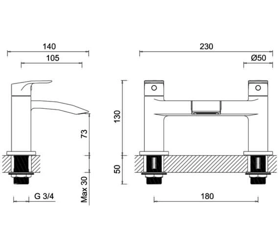 The simple yet striking Bath Filler Tap from Flow range of Crosswater is all set to rock your bathing experience. The sensational chrome finish and easy-to-use levers, make this dual lever, deck mounted bath filler a gleeful addition at any bath top. The incorporation of quarter-turn ceramic disc and robust brass body adds durability to this ravishing bath filler tap. With 12 months of guarantee on ceramic disc cartridge and a 5 year guarantee on tap from Lauren, you can care-freely enjoy thrilling baths for years.