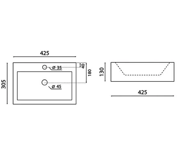 Crosswater Infinity Gerona Single Tap Hole Contemporary White Basin – 425 X 305mm