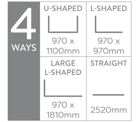 The Croydex Fineline Modular Rod Kit will decorate your walls and add a functional element at the same time. The product features two stainless steel ceiling supports and twelve stylish curtain rings and can be used to create different assembly options: U-Shaped, L-Shaped, Large-L Shaped and Straight. This can be used as-is or cut to exact requirements. This unit includes all fixings and can be purchased at a never-before price from our online store at qssupplies.co.uk.