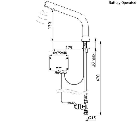 The Delabie Binoptic Deck Mounted Electronic Tap is available for purchase in both mains operated and battery-operated variations as well as 2 possible size options to choose from as well. Designed for deck-mounted installation and complete with an independent IP65 electronic unit along with it, this product is WRAS approved and suitable for use by those with reduced mobility. Offering active, infrared presence detection via a sensor on the end of the spout itself; this unit also features an adjustable duty flush that occurs for 60 seconds every 24 hours since the last use.