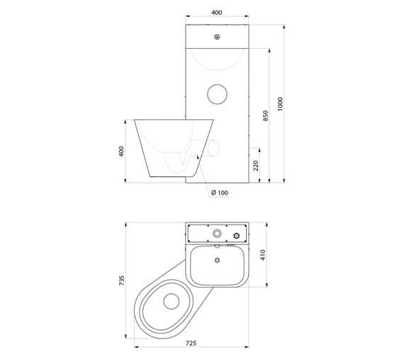 - Overall size of washbasin with wall-hung WC on center: 400 x 850 x 1000mm [Width x Length x Height].