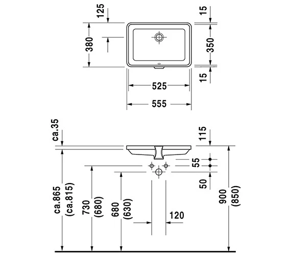 Duravit 2nd Floor 555 X 380mm No Tap Hole Undercounter Vanity Basin