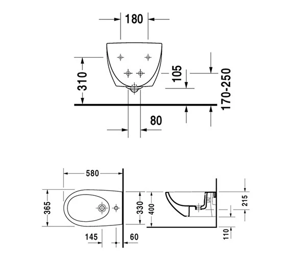 Duravit Architec Wall Mounted Bidet 365 X 580mm – 2531150000