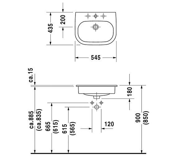 Duravit D-Code 545mm Countertop Vanity Basin With 1 Tap Hole
