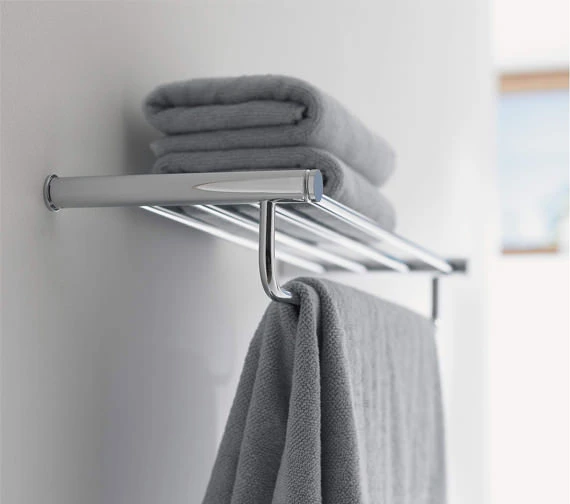 This brilliantly designed D-Code Towel Shelf from Duravit is highly functional yet attractive, and it comes in glossy chrome finish. This towel shelf is easily installable-thanks to its appropriate size and structure. It has a practical slatted profile that does justice to the chrome finish which gives it an unmatched presence. Ideal for use in any , it is solid and durable. It carries a contemporary design and is backed with a 2-year warranty from the manufacturer.