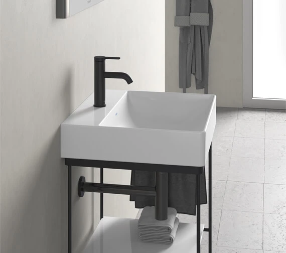 Duravit DuraSquare 500mm Furniture Washbasin has a stylish square shape and excellent white finish giving it a contemporary look that will add a touch of elegance to any location. Made of long-lasting Duraceram, it features tap holes according to your preference. The design includes a tap platform, no overflow and has a glazed underside. It carries a warranty of 5 years from the manufacturer. You can use it with an optional freestanding and wall-mounted metal console or Glass insert for a metal console or towel rail for increased convenience.