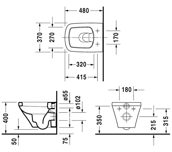 Duravit DuraStyle 370 X 480mm Compact Wall Mounted Toilet