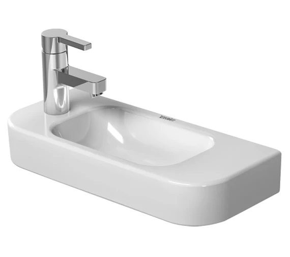 Duravit is a proud manufacturer for its fashionably functional bathroom ware, and this Handrinse Basin is one of its enticing creations. Part of the exclusive Happy D2 range, it is designed by Sieger Design Studio. Featuring a single tap-hole on the left, it has a white finish. Inclusive without overflow and tap platform complement the sink that is also available with right tap-hole. This endearing creation carries a 5-year warranty from the manufacturer.