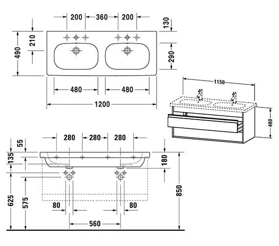 Duravit Ketho 2 Drawer 1150mm Wall-mounted Vanity Unit