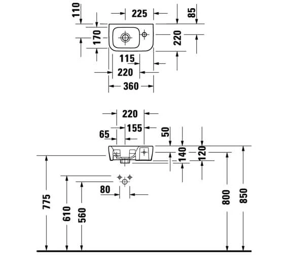 Duravit No.1 360 X 220mm 1 Tap Hole Wall Mounted White Basin
