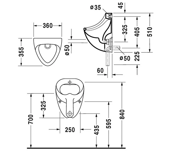 Duravit Wall Hung 360 x 355mm Urinal is remarkably designed to fit places like restaurants, lodge, hotels and any other hospitality service places or you can install in your home as well. It is available in four trendy variations; Concealed Inlet-Without Fly Image and Visible Inlet-Without Fly Image. It Comes in a polished white Alpin finish. This Urinal has got siphonic action which avoids spilling any droplets.