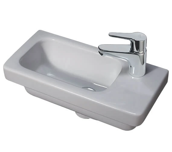 The Essential IVY Slimline Wall Mounted Basin is the kind of fitment that will work for you in your cloakroom, where every conceivable space needs to be utilised. Its square lines are smoothed by soft edges to give a contemporary look. Constructed from the finest Vitreous China, this basin is durable and will last you for many years. It sports a crisp, white finish which gives it a clean and hygienic look. This wall-mounted, compact piece with an asymmetrical profile is perfect for smaller dimensioned interiors. It is supplied with a single tap hole that can accommodate a range of brassware.