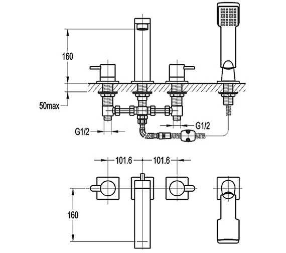 Flova Essence 4 Hole Diamond Chrome Finish Bath-Shower Mixer Tap With Handset And Hose