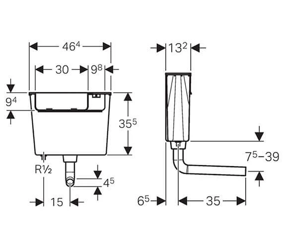 Geberit 464 X 355mm Low-Height Furniture Cistern With Pneumatic Actuation