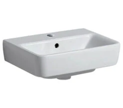 Geberit endeavours constantly to infuse newness, superior efficiency and ease of use in their range of products. The stylish Selnova Handrinse Basin will impress you with its options for customising it to suit a location. Designed to delight, it can be availed with options of 1 tap-hole or 2 tap-holes to suit specific requirements. Easy to install with optionally available wall bolts, it has sturdy Vitreous China construction and space-saving rectangular design. Its low maintenance white finish make it particularly suitable for compact bathrooms and is ideal for use in clubhouses, hotels and leisure-oriented locations.