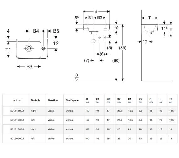 - ✔Short projection basin with one tap hole