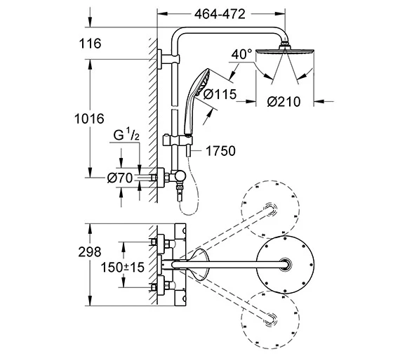 Grohe Euphoria Thermostatic 210 Chrome Shower System – 27964000